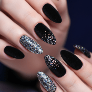 This exquisite, high-resolution portrait image, captured at a striking 1000×1500 resolution, unveils a truly mesmerizing manicure that marries opulent luxury with enigmatic allure. The central focus is a…